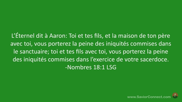 L'Éternel dit à Aaron: Toi et tes fils, et la maison de ton père avec toi, vous porterez la peine des iniquités commises dans le sanctuaire; toi et tes fils avec toi, vous porterez la peine des iniquités commises dans l'exercice de votre sacerdoce. -Nombres 18:1 LSG