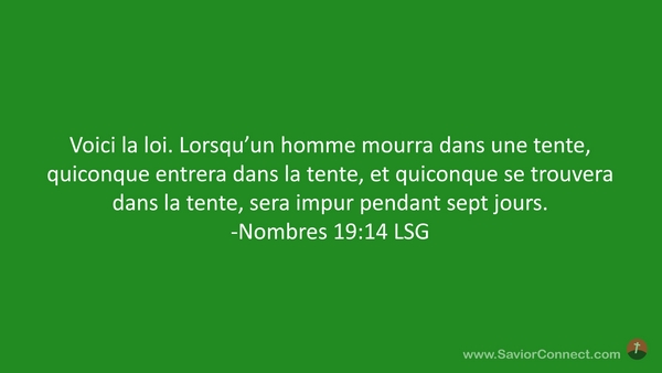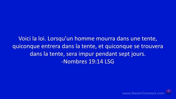 Voici la loi. Lorsqu'un homme mourra dans une tente, quiconque entrera dans la tente, et quiconque se trouvera dans la tente, sera impur pendant sept jours. -Nombres 19:14 LSG