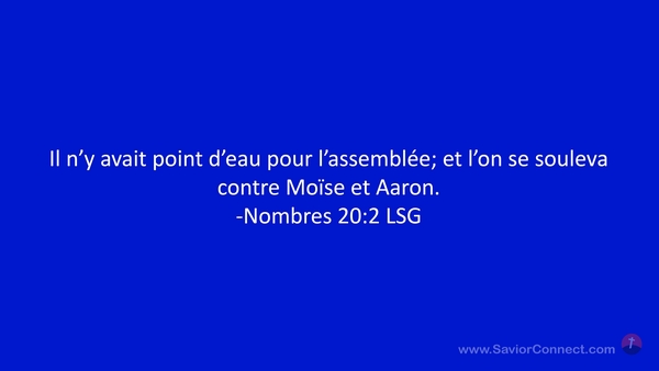 Il n'y avait point d'eau pour l'assemblée; et l'on se souleva contre Moïse et Aaron. -Nombres 20:2 LSG