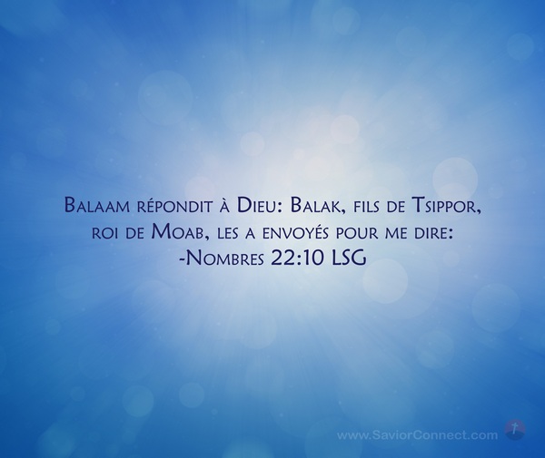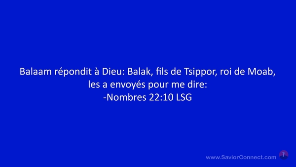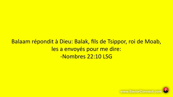 Balaam répondit à Dieu: Balak, fils de Tsippor, roi de Moab, les a envoyés pour me dire: -Nombres 22:10 LSG