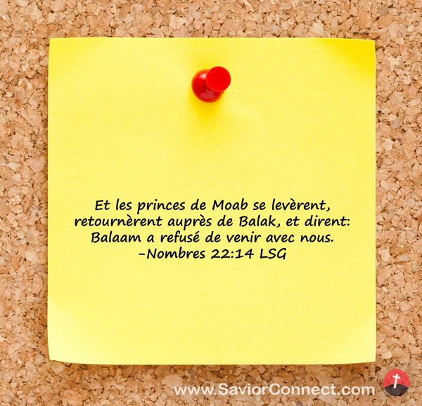 Et les princes de Moab se levèrent, retournèrent auprès de Balak, et dirent: Balaam a refusé de venir avec nous. -Nombres 22:14 LSG
