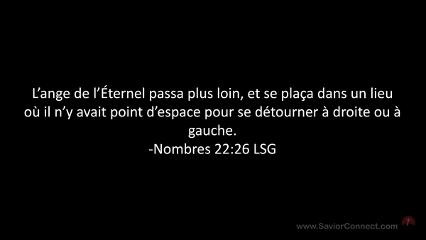 L'ange de l'Éternel passa plus loin, et se plaça dans un lieu où il n'y avait point d'espace pour se détourner à droite ou à gauche. -Nombres 22:26 LSG