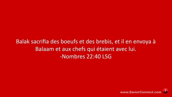 Balak sacrifia des boeufs et des brebis, et il en envoya à Balaam et aux chefs qui étaient avec lui. -Nombres 22:40 LSG