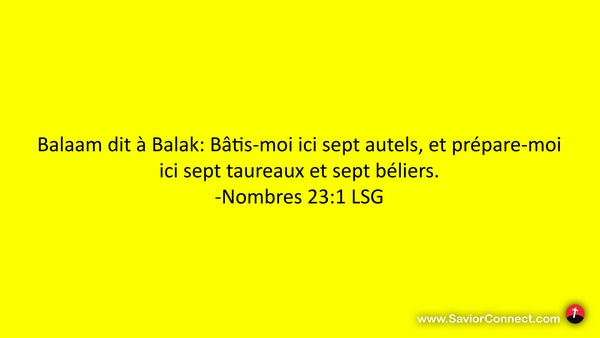 Balaam dit à Balak: Bâtis-moi ici sept autels, et prépare-moi ici sept taureaux et sept béliers. -Nombres 23:1 LSG
