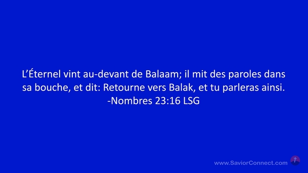 L'Éternel vint au-devant de Balaam; il mit des paroles dans sa bouche, et dit: Retourne vers Balak, et tu parleras ainsi. -Nombres 23:16 LSG