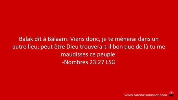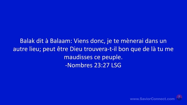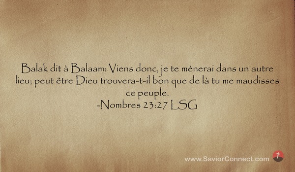Balak dit à Balaam: Viens donc, je te mènerai dans un autre lieu; peut être Dieu trouvera-t-il bon que de là tu me maudisses ce peuple. -Nombres 23:27 LSG