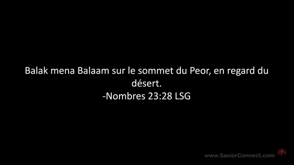 Balak mena Balaam sur le sommet du Peor, en regard du désert. -Nombres 23:28 LSG