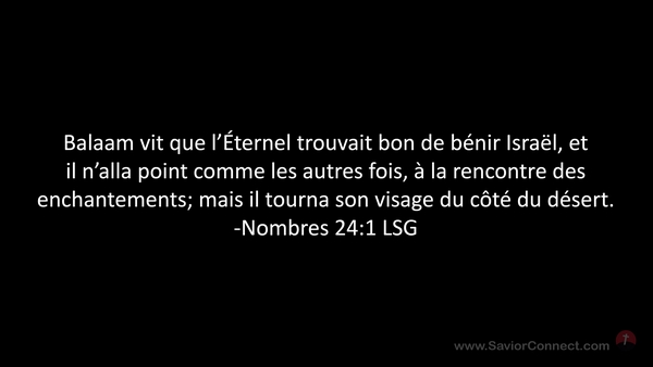 Balaam vit que l'Éternel trouvait bon de bénir Israël, et il n'alla point comme les autres fois, à la rencontre des enchantements; mais il tourna son visage du côté du désert. -Nombres 24:1 LSG