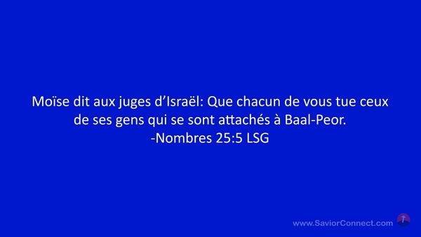 Moïse dit aux juges d'Israël: Que chacun de vous tue ceux de ses gens qui se sont attachés à Baal-Peor. -Nombres 25:5 LSG