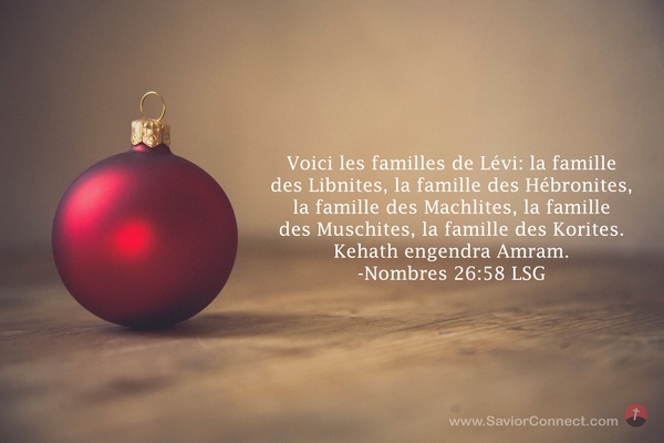 Voici les familles de Lévi: la famille des Libnites, la famille des Hébronites, la famille des Machlites, la famille des Muschites, la famille des Korites. Kehath engendra Amram. -Nombres 26:58 LSG