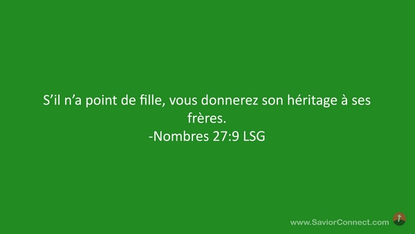 S'il n'a point de fille, vous donnerez son héritage à ses frères. -Nombres 27:9 LSG