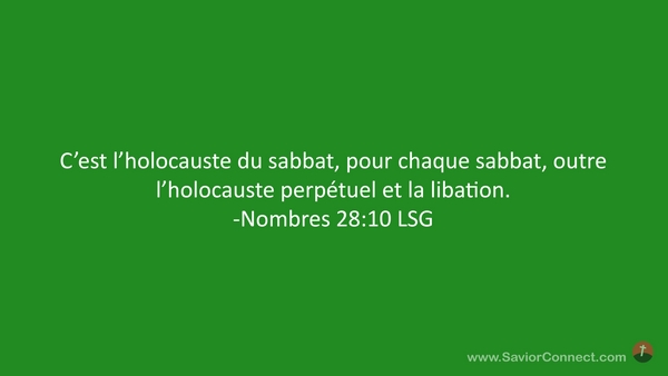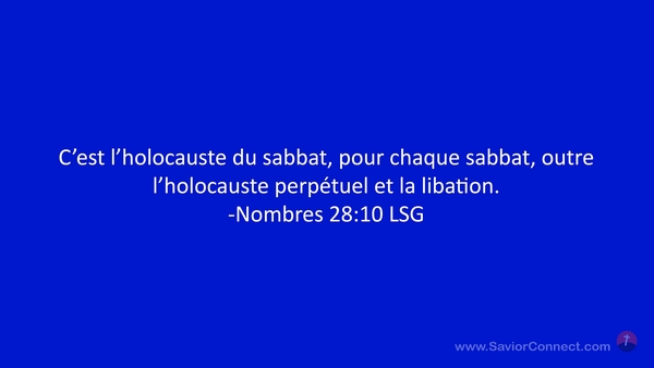C'est l'holocauste du sabbat, pour chaque sabbat, outre l'holocauste perpétuel et la libation. -Nombres 28:10 LSG