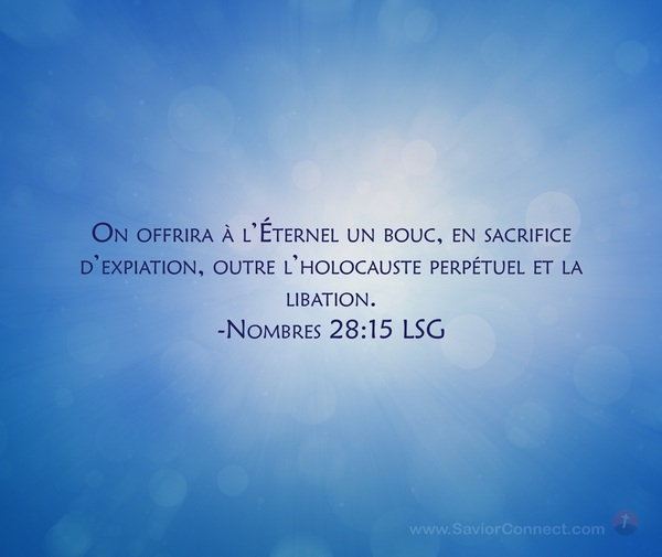 On offrira à l'Éternel un bouc, en sacrifice d'expiation, outre l'holocauste perpétuel et la libation. -Nombres 28:15 LSG