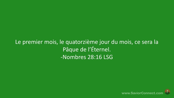 Le premier mois, le quatorzième jour du mois, ce sera la Pâque de l'Éternel. -Nombres 28:16 LSG