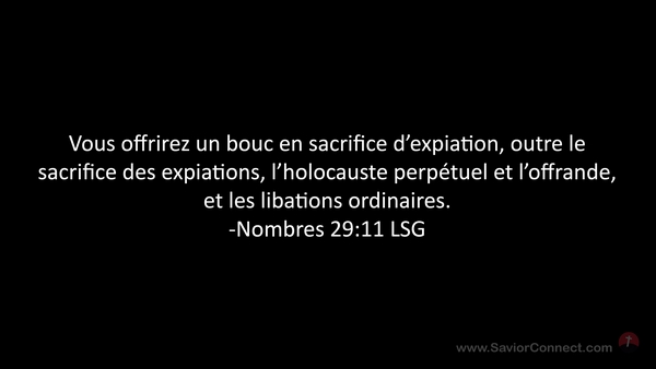 Vous offrirez un bouc en sacrifice d'expiation, outre le sacrifice des expiations, l'holocauste perpétuel et l'offrande, et les libations ordinaires. -Nombres 29:11 LSG