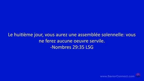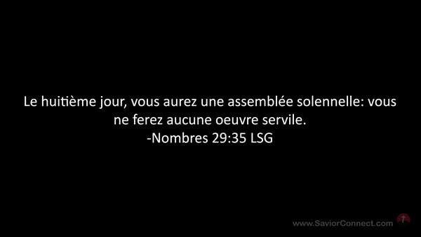 Le huitième jour, vous aurez une assemblée solennelle: vous ne ferez aucune oeuvre servile. -Nombres 29:35 LSG