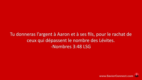 Tu donneras l'argent à Aaron et à ses fils, pour le rachat de ceux qui dépassent le nombre des Lévites. -Nombres 3:48 LSG