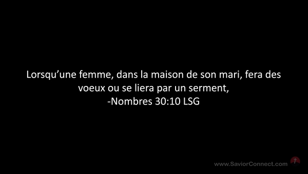 Lorsqu'une femme, dans la maison de son mari, fera des voeux ou se liera par un serment, -Nombres 30:10 LSG