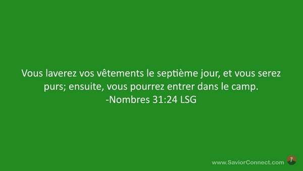 Vous laverez vos vêtements le septième jour, et vous serez purs; ensuite, vous pourrez entrer dans le camp. -Nombres 31:24 LSG