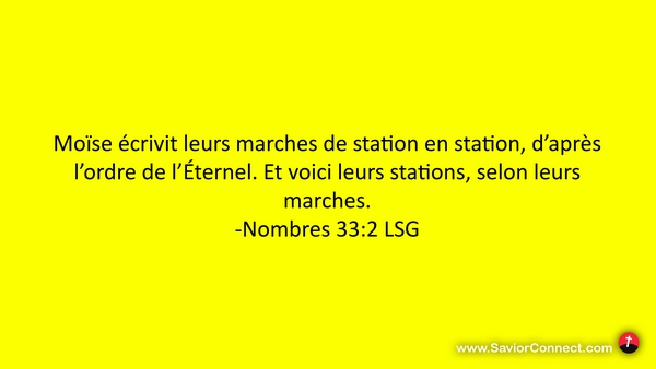 Moïse écrivit leurs marches de station en station, d'après l'ordre de l'Éternel. Et voici leurs stations, selon leurs marches. -Nombres 33:2 LSG