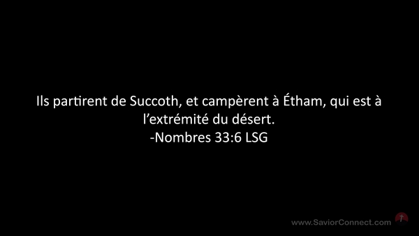 Ils partirent de Succoth, et campèrent à Étham, qui est à l'extrémité du désert. -Nombres 33:6 LSG