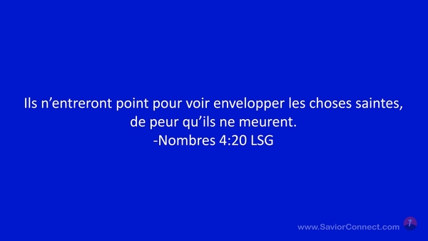 Ils n'entreront point pour voir envelopper les choses saintes, de peur qu'ils ne meurent. -Nombres 4:20 LSG