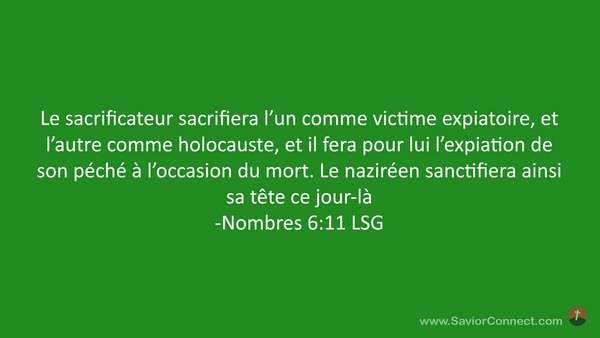 Le sacrificateur sacrifiera l'un comme victime expiatoire, et l'autre comme holocauste, et il fera pour lui l'expiation de son péché à l'occasion du mort. Le naziréen sanctifiera ainsi sa tête ce jour-là -Nombres 6:11 LSG