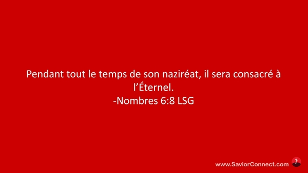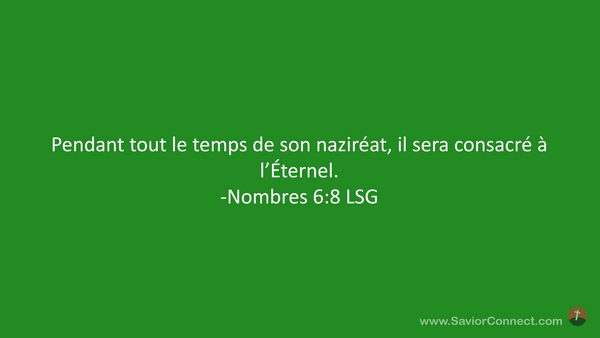 Pendant tout le temps de son naziréat, il sera consacré à l'Éternel. -Nombres 6:8 LSG