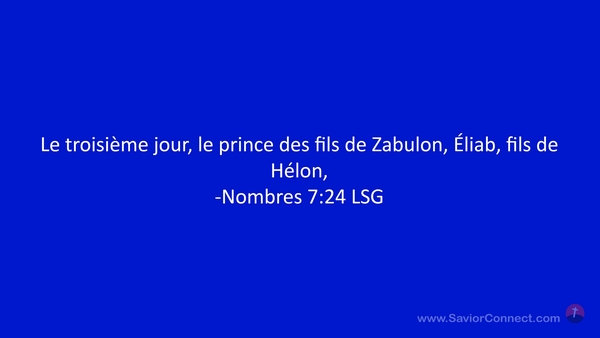 Le troisième jour, le prince des fils de Zabulon, Éliab, fils de Hélon, -Nombres 7:24 LSG