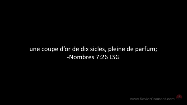 une coupe d'or de dix sicles, pleine de parfum; -Nombres 7:26 LSG