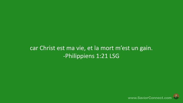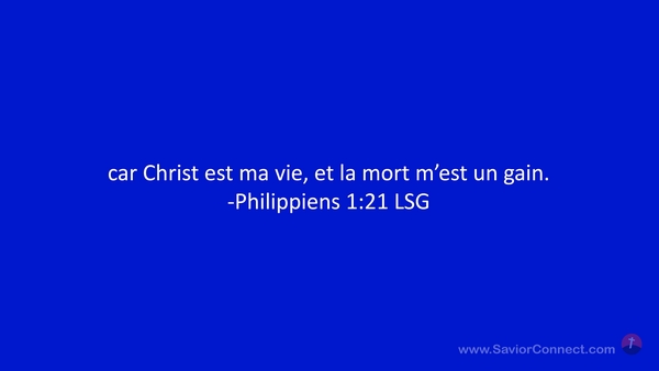 car Christ est ma vie, et la mort m'est un gain. -Philippiens 1:21 LSG
