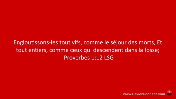 Engloutissons-les tout vifs, comme le séjour des morts, Et tout entiers, comme ceux qui descendent dans la fosse; -Proverbes 1:12 LSG