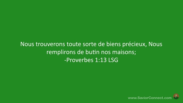 Nous trouverons toute sorte de biens précieux, Nous remplirons de butin nos maisons; -Proverbes 1:13 LSG