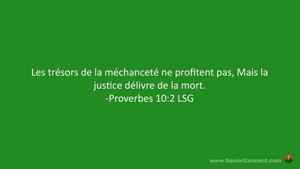 Les trésors de la méchanceté ne profitent pas, Mais la justice délivre de la mort. -Proverbes 10:2 LSG