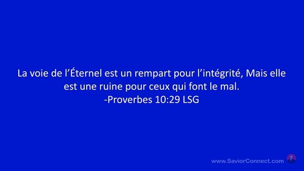 La voie de l'Éternel est un rempart pour l'intégrité, Mais elle est une ruine pour ceux qui font le mal. -Proverbes 10:29 LSG