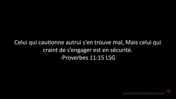 Celui qui cautionne autrui s'en trouve mal, Mais celui qui craint de s'engager est en sécurité. -Proverbes 11:15 LSG