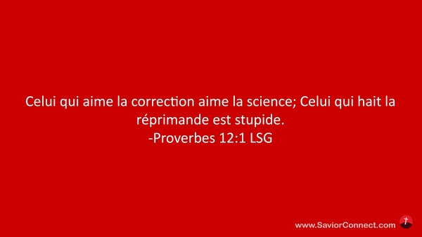 Celui qui aime la correction aime la science; Celui qui hait la réprimande est stupide. -Proverbes 12:1 LSG