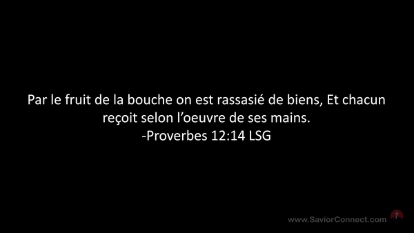 Par le fruit de la bouche on est rassasié de biens, Et chacun reçoit selon l'oeuvre de ses mains. -Proverbes 12:14 LSG