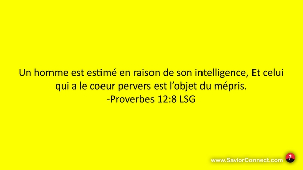 Un homme est estimé en raison de son intelligence, Et celui qui a le coeur pervers est l'objet du mépris. -Proverbes 12:8 LSG