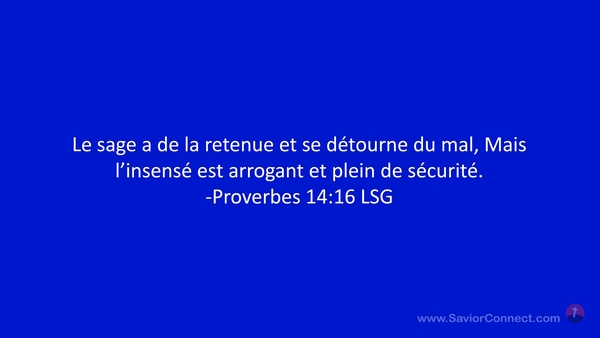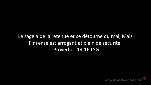 Le sage a de la retenue et se détourne du mal, Mais l'insensé est arrogant et plein de sécurité. -Proverbes 14:16 LSG