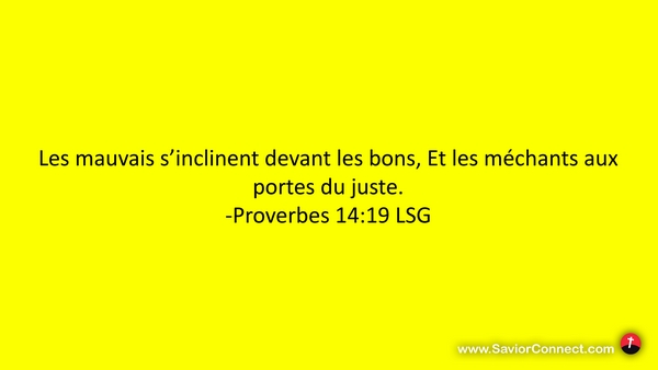 Les mauvais s'inclinent devant les bons, Et les méchants aux portes du juste. -Proverbes 14:19 LSG