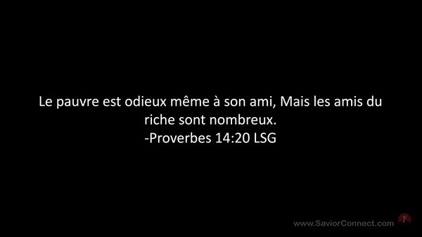 Le pauvre est odieux même à son ami, Mais les amis du riche sont nombreux. -Proverbes 14:20 LSG