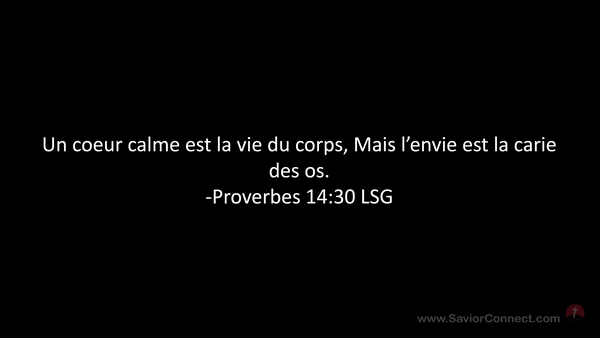 Un coeur calme est la vie du corps, Mais l'envie est la carie des os. -Proverbes 14:30 LSG