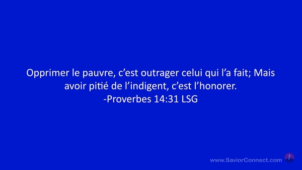 Opprimer le pauvre, c'est outrager celui qui l'a fait; Mais avoir pitié de l'indigent, c'est l'honorer. -Proverbes 14:31 LSG