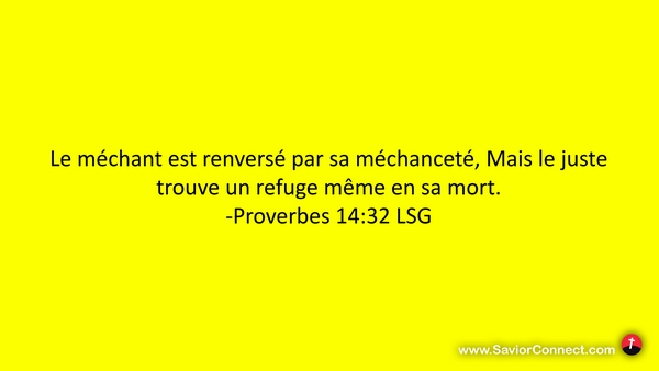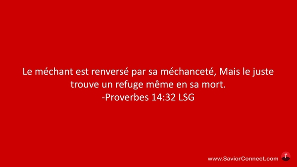 Le méchant est renversé par sa méchanceté, Mais le juste trouve un refuge même en sa mort. -Proverbes 14:32 LSG