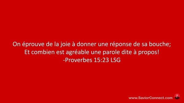 On éprouve de la joie à donner une réponse de sa bouche; Et combien est agréable une parole dite à propos! -Proverbes 15:23 LSG