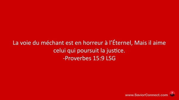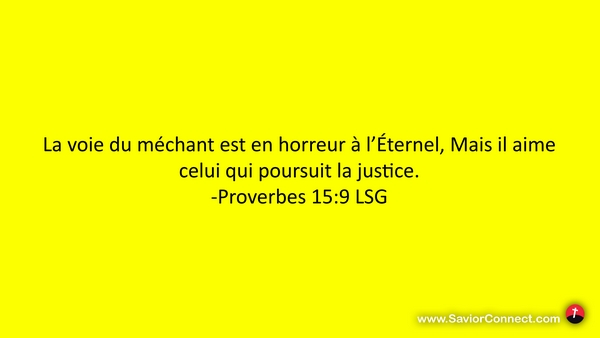 La voie du méchant est en horreur à l'Éternel, Mais il aime celui qui poursuit la justice. -Proverbes 15:9 LSG