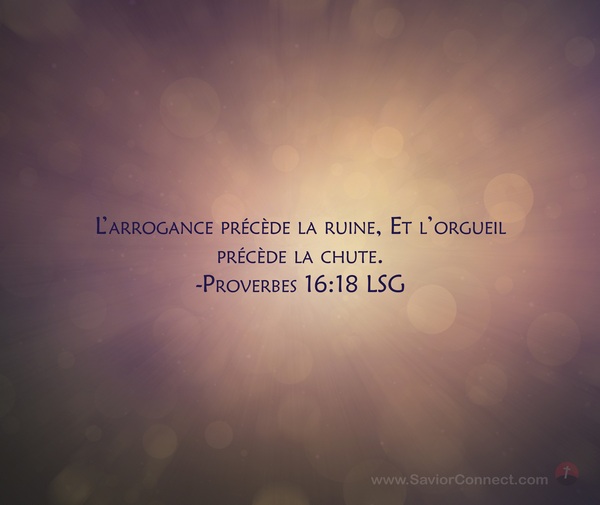 L'arrogance précède la ruine, Et l'orgueil précède la chute. -Proverbes 16:18 LSG