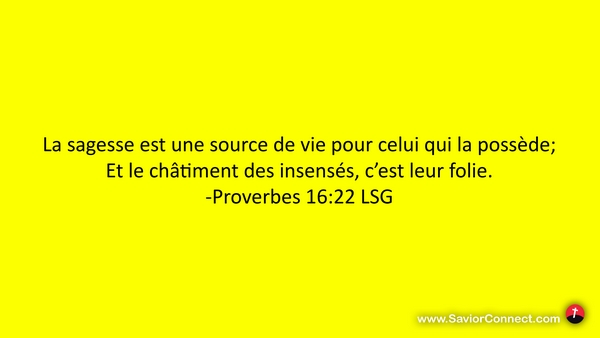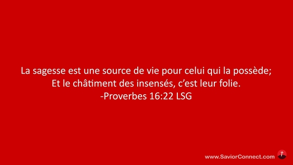 La sagesse est une source de vie pour celui qui la possède; Et le châtiment des insensés, c'est leur folie. -Proverbes 16:22 LSG
