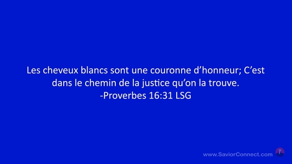 Les cheveux blancs sont une couronne d'honneur; C'est dans le chemin de la justice qu'on la trouve. -Proverbes 16:31 LSG